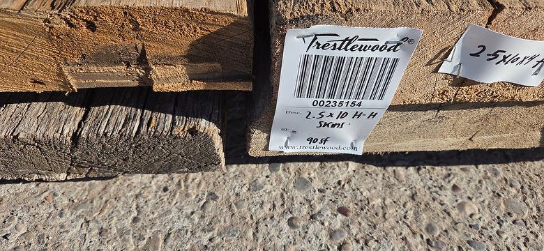 bc# 235154 - 2.5" x 10" Hand-Hewn Skins - 225.00 bf - 90 sf, 11-16' Avg., square edge
