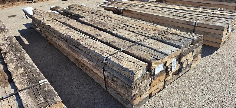 bc# 235176 - 2.5" x 9" Hand-Hewn Skins - 534.38 bf - 213.75 sf, 7-13' Avg., square edge