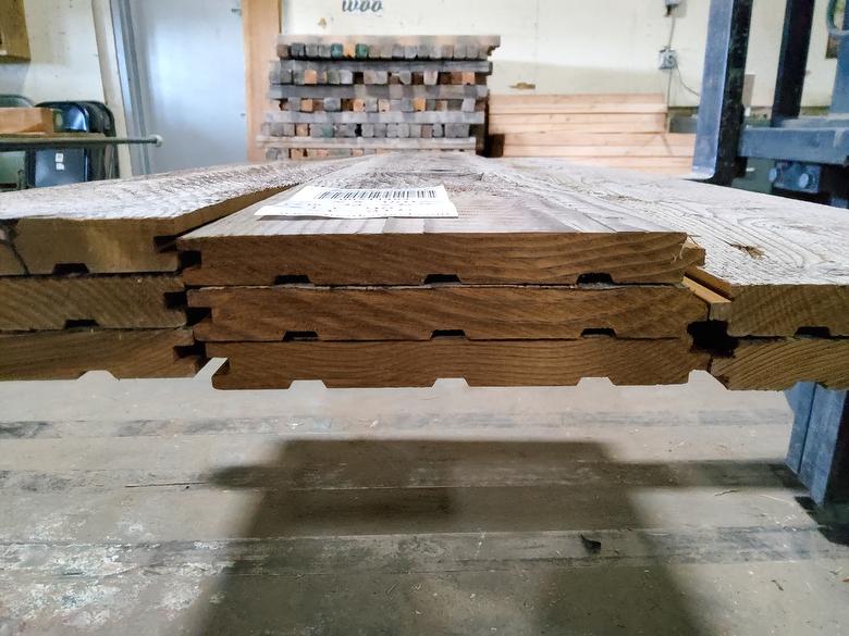 Photoset #86731 - bc# 241464 - .72" x 6.49" ThermalAged Brown T&G Lumber[Dark] - 21.63 sf - Weathered to Gray