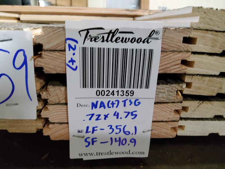 bc# 241359 - .72" x 4.75" NatureAged Gray T&G Lumber[Gray+] - 140.92 sf - L = 2-8'