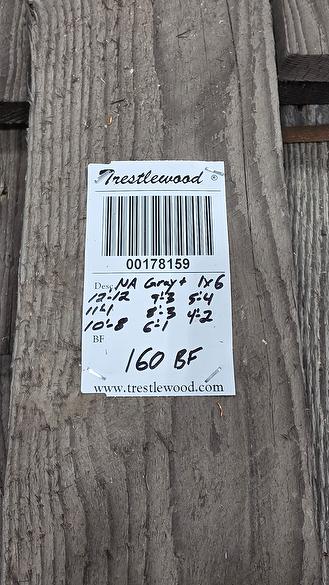 bc# 178159 - 1" x 6" NatureAged Gray Lumber[Gray+] - 160.00 bf