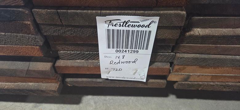 bc# 241299 - 1" x 8" Antique Redwood Brown Smooth - 720.00 bf - =/-7.25, l=10-14